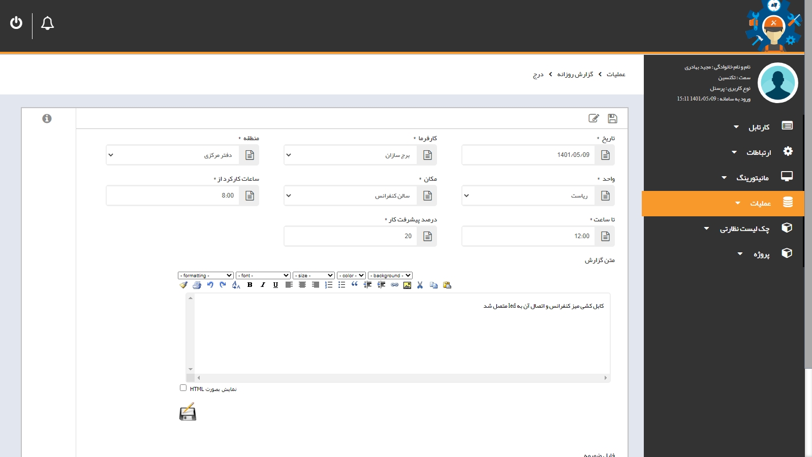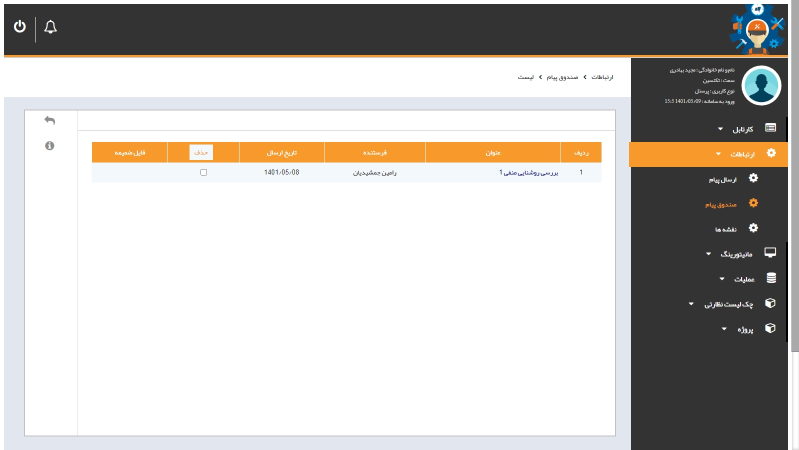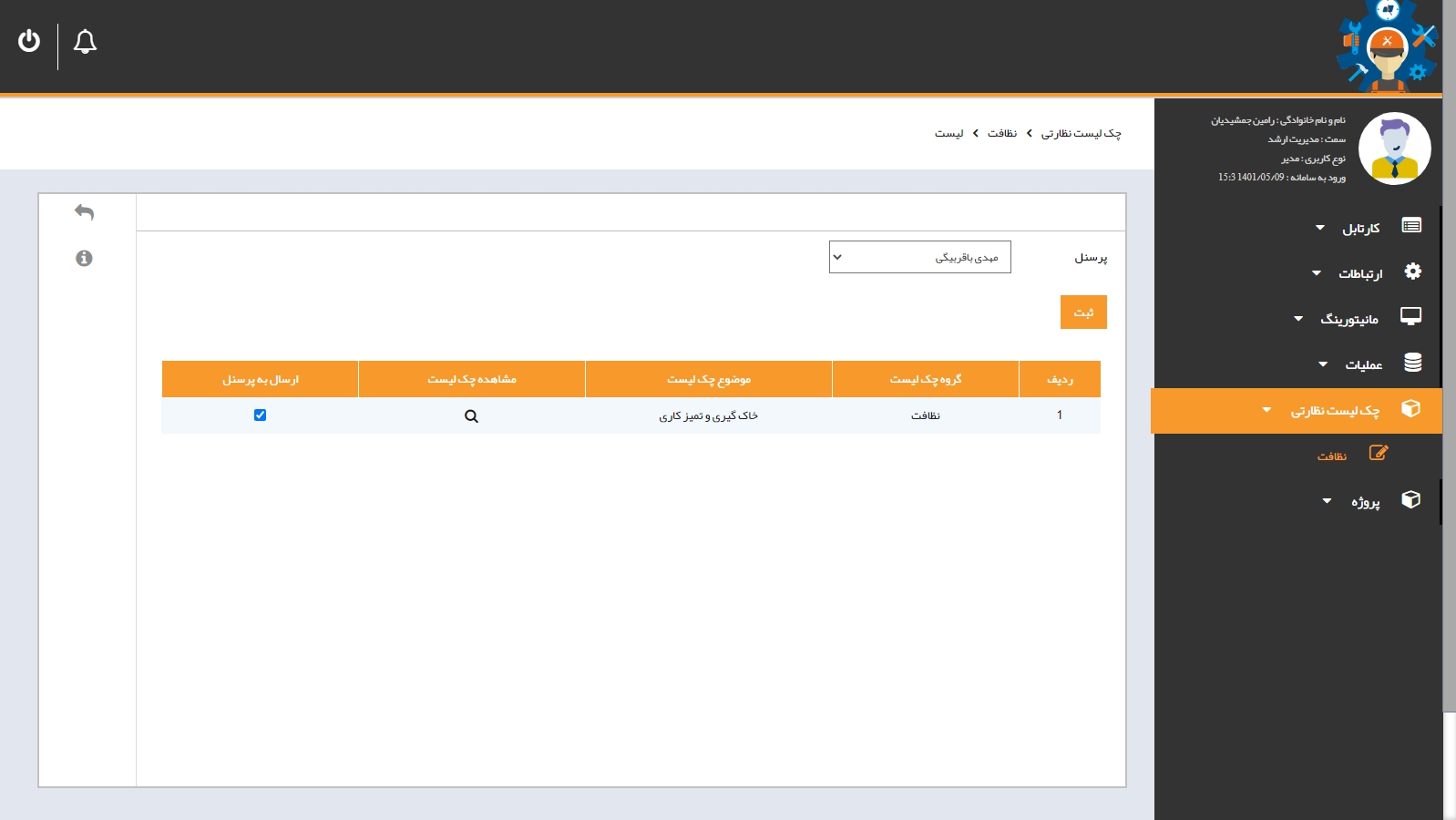 ارسال زمانبندی کارهای پروژه به گروه های تعمیر و نگهداری
