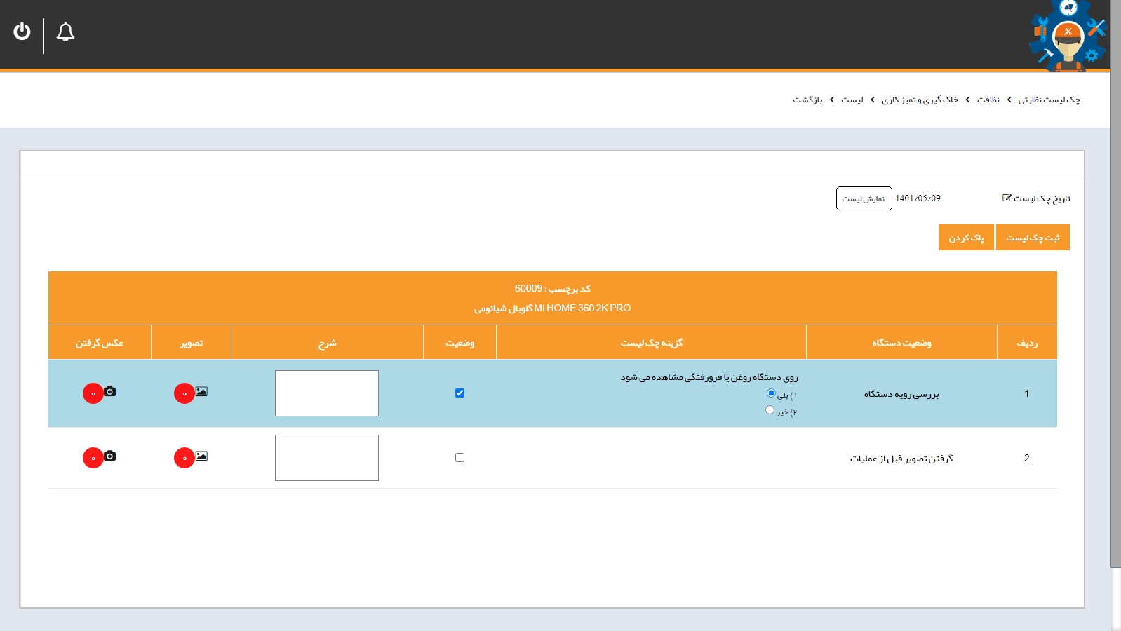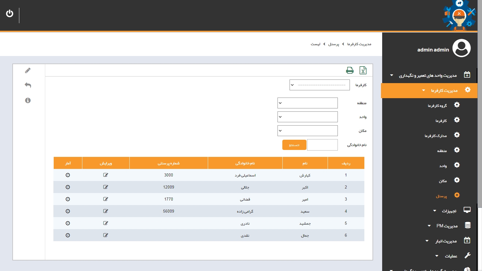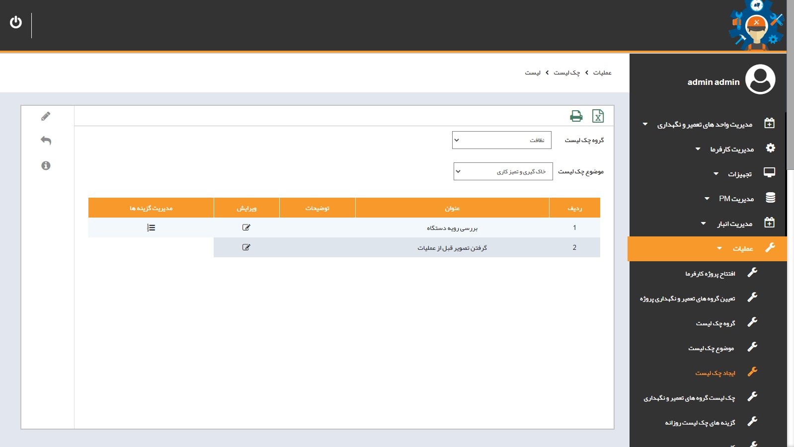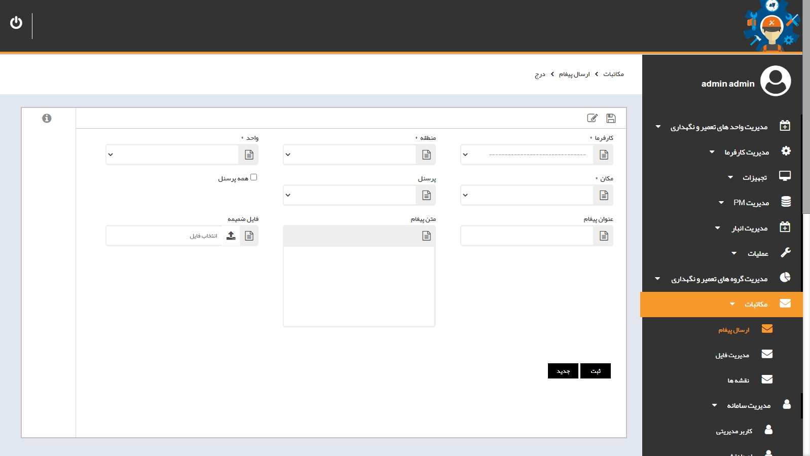 امکانات ناحیه مدیریت سامانه تعمیر و نگهداری